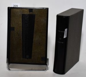 CAMUS (Albert). La Peste. S. l., Gallimard, s. d. [Paris, 1947]. In-8°, box noir, large décor mosaïqué au centre du premier plat, dos lisse orné, chemise à rabats en demi-box noir, étui (reliure fin XXe s.). ÉDITION ORIGINALE. Tiré à 2355 exemplaires, celui-ci (n° 55), un des 215 sur vélin pur fil des Papeteries Lafuma-Navarre.