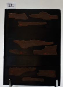 CORBIÈRE (Tristan). Armor. A Paris, Chez L’Imprimeur Léon Pichon, 1920. In-8°, box noir, décor mosaïqué de bandes d’écorces horizontales ornant les plats, dos lisse, couverture conservée, boite-étui en demi-box (M. F. Jordan). Bois par André DESLIGNÈRES. Tiré à 440 exemplaires, celui-ci (n° 129), un des 360 sur vélin d’Arches. Légères décharges.