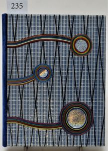 CROMBIE (John). Elastique fantastique. S. l., Kickshaws, n. d. [Paris, 1991]. In-12, mylar, décor personnalisé mosaïqué ornant les plats, dos lisse, couverture illustrée conservée, chemise à rabats (reliure fin XXe s.). Illustrations en couleurs par John CROMBIE. Tiré à 170 exemplaires, celui-ci n° 95.