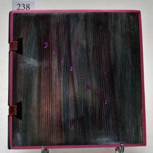 [CROMBIE (John)]. Passages. S.l.n.d. [1989]. In-12 carré, chagrin rose, box orné ornant les plats avec titre sur le premier, dos à nerfs en maroquin, couverture illustrée en couleurs conservée (reliure fin XXe s.). Douze illustrations en couleurs par John CROMBIE. Tiré à 100 exemplaires sur BFK de Rives imprimés et signés par l’auteur, celui-ci n° 11.