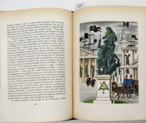 DAUDET (Léon). Les Morticoles. Paris, Éditions Valère, 1939. In-4°, chagrin vert sombre, dos lisse mosaïqué, couverture illustrée conservée, étui (M. F. Jordan). Nombreuses illustrations en couleurs dont quinze planches, par Lucien BOUCHER. Tiré à 1550 exemplaires, celui-ci (n° 481), un des 1375 sur vélin pur fil. Dos légèrement passé ; quelques rousseurs.