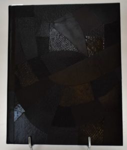 GARCIA LORCA (Frederico). Cante Jondo. S. l. [Perpignan], Paul Soler, 1952. In-4°, demi-box noir, large décor mosaïqué de diverses pièces de cuirs noirs ornant les plats, dos lisse muet, couverture conservée, chemise à rabats en demi-box noir avec titre au dos, étui (reliure fin XXe s.). Dix poèmes ornés de lithographies à pleine page par Paul SOLER. Tiré à 90 exemplaires, celui-ci n° 31.