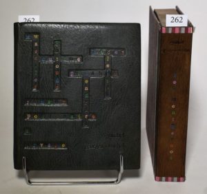 GEORGES-MICHEL (Michel). Les Montparnos. Paris, Fasquelle Éditeurs, 1929. In-8° carré, maroquin gris, décor géométrique en relief portant les noms des Montparnos ornant les plats, dos lisse, non rogné, couverture illustrée en couleurs conservée, boite-étui en demi-maroquin gris orné (M. F. Jordan). Illustrations en fac-similé par MODIGLIANI, PICASSO, FOUJITA, MAN RAY, etc. Exemplaire d’artiste sur grand papier non justifié. Dos de l’étui passé.