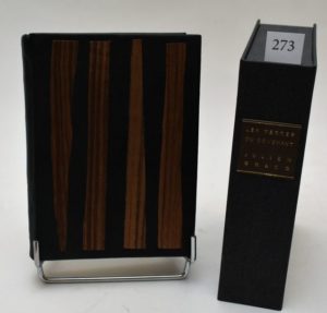 GRACQ (Julien). Les Terres du Couchant. S. l., Éditions Corti, n. d. [2014]. In-12 carré, maroquin vert sombre, plats ornés de lamelles de bois verticales, dos lisse muet, couverture conservée, boite-étui (reliure fin XXe s.). ÉDITION ORIGINALE. Un des 110 exemplaires du tirage de tête, celui-ci (n° 73), un des 100 sur vergé Conqueror blanc nacré.