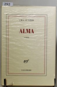 Le CLÉZIO (Jean-Marie Gustave). Alma. Roman. S. l., Gallimard, n. d. [Paris, 2017]. In-8° broché, couverture rempliée. ÉDITION ORIGINALE. Un des 140 ex. du tirage de tête sur vélin rivoli, celui-ci n° 24. Petit accident sur la couverture.