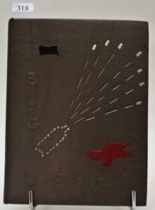 MORAND (Paul). Bug O’Shea. Paris, Édité par Les Laboratoires Deglaude, 1936. In-4°, maroquin gris, titre et large décor personnalisé argenté et mosaïqué ornant le premier plat, dos lisse, tête dorée, couverture conservée, boite-étui en maroquin gris (M. F. Jordan). ÉDITION ORIGINALE. Dessins en couleurs dans le texte par Louis ICART. Ouvrage hors commerce « réservé exclusivement à MM. Les Médecins ». Déchirure restaurée en page de garde ; petit accident sur l’étui.