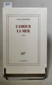 QUIGNARD (Pascal). L’Amour la mer. Roman. S. l., Gallimard, n. d. [Paris, 2021]. In-8°, broché, non coupé, couverture à rabats. ÉDITION ORIGINALE. Un des 110 exemplaires du tirage de tête sur vélin rivoli, celui-ci n° 38.