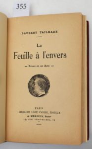 TAILHADE (Laurent). La Feuille à l’envers. Paris, Librairie Léon Vanier, Éditeur, 1909. …