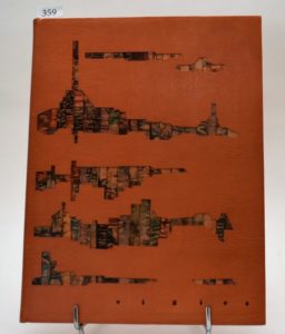 TZARA (Tristan). Vigies. S. l., Alexandre Loewy, n. d. [Paris, 1962]. In-4°, maroquin orange, large décor mosaïqué ornant les plats, titre sur le premier, dos lisse, chemise et étui (reliure fin XXe s.). Cinq eaux-fortes en couleurs par Camille BRYEN. Tiré à 110 exemplaires, celui-ci (n° 65), un des 90 sur vélin de rives, signés par l’auteur et l’artiste. Petits accidents aux mors de la chemise.