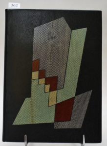 VERCORS. Le Silence de la mer. S. l., A la croisée des chemins, 1947. In-4°, maroquin vert sombre, large décor géométrique et mosaïqué de divers cuirs ornant les plats, dos lisse, couverture conservée, boite-étui de toile verte (M. F. Jordan). Seize lithographies en couleurs par Olga SZÉKELY-KOVÀCS. Tiré à 500 exemplaires, celui-ci (n° 24), un des 475 sur vélin du Marais.