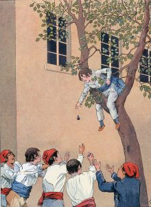 Quand le grand Napoléon était petit. Illustrations de Job. P., Delagrave, 1931, 4°, 44 p., figures in-texte en noir, compositions h. t. en couleurs sur papier glacé, demi-toile grise, plats cartonnés, plat supér. illustré (cart. défraîchi, tête de dos abîmée).