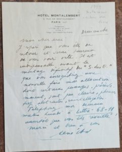 CHAR René LETTRE AUTOGRAPHE SIGNÉE À [Henri Matarasso]. Paris, 1949. Une page in-8 à l'encre. Lettre relative au Soleil des Eaux, de René Char, édité en 1949 par Henri Matarasso. ... «Il est indispensable avant le montage définitif du «S des E» que vous enregistriez une nouvelle fois mon allocution dont certains passages précédemment sont peu clairs, phrases trop abstraites, inintelligibles...»