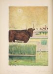 CHAR René. CHARBONNIER Pierre QUATRE FASCINANTS. LA MINUTIEUSE. Paris, s.e., 1951. In-folio, box vert, plats entièrement ornés de jeux de filets dorés et à froid s'entrecroisant, encadrement intérieur, dos lisse titré or, tranches dorées sur témoins, couverture et dos conservés, chemise (dos usagé), étui (Semet et Plumelle). Édition originale. Tirage à 86 exemplaires sur Arches, signés par l‘auteur et l‘artiste. Exemplaire exceptionnel comportant en plus du frontispice de Pierre Charbonnier, 3 épreuves d'artiste tirées à 7 exemplaires signées, ainsi qu'une 4e épreuve d'artiste coloriée à la main et tirée à 2 exemplaires.