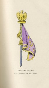 Le Bataillon des Marins de la Garde, 1803-1815. Nombreux extraits des mémoires inédits du Vice-Amiral baron Grivel. Documents sur le quartier maritime de Saint-Valéry-sur-Somme. Avec 15 ill. de G. Amoretti, portraits, fac-similé, cartes et plans. Saint-Valéry-sur-Somme, Impr. E. Lefbvre, 1905, 8°, XIII-502 p., demi-chagrin bleu foncé, dos à 5 nerfs, auteur, titre et date dorés, tête dorée, couv. cons., 2 ex-libris l'un armorié, l'autre du Colonel Sculfort (dos passé) (reliure signée de Canape). Edit. orig. Les mémoires de Grivel sont "une source importante pour l'histoire de la marine impériale et de la garde de la marine, la guerre d'Espagne, les pontons de Cadix, la campagne de France" (Tulard, 653).