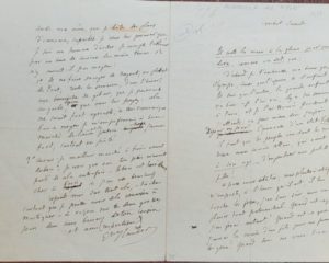 FLAUBERT Gustave Lettre autographe signée à sa cousine Olympe Bonenfant. 4 pages in-8 à l'encre. «Je mets la main à la plume pour vous dire comme on dit que ! d'abord je t'embrasse ma bonne grosse Olympe» ... ... «Tu as sans doute appris l'escapade du père Hamard voilà les bourgeois ! on le considérait celui-là. On disait c'est un homme de jugement etc ! vieille canaille va ! ... «Je sais au fond que je n'ai pas toute la considération sociale que j'aurais pu avoir si dès mes jeunes ans, j'avais dirigé toute mon intelligence vers la rouerie l'épicerie ou la diplomatie, et cela me torture» ... ... «Je quitte cet hiver Croisset pour aller habiter Paris, le réceptacle de tous les misérables. Pourquoi ? Que le diable m'étrangle si j'en sais quelque chose ! C'est un peu je crois pour obéir à une idée reçue, pour faire comme les autres, par esprit d'imitation, par bêtise... Dans dix mois je ferai gémir les presses (lesquelles ne gémissent plus) mais qui devraient bien hurler de douleur sous le poids de toutes les turpitudes dont on les charge» ...