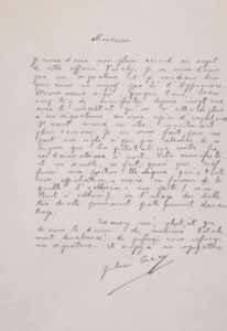 GRACQ Julien LETTRE AUTOGRAPHE SIGNÉE CONCERNANT L'AFFAIRE FINALY. Circa 1953. 1 page in-8 à l'encre. Julien Gracq refuse de signer une pétition concernant l'affaire Finaly. En 1944, le docteur Fritz Finaly et sa femme sont déportés à Auschwitz dont ils ne reviendront pas. Leurs deux garçons sont confiés aux religieuses de Notre-Dame-de-Sion à Grenoble puis à la directrice de la crèche municipale Antoinette Brun qui refusera quelques semaines plus de tard de restituer les enfants à leur famille juive et les fera baptiser. Cette affaire enflammera toute la France et des comités de soutien et nombreuses pétitions verront le jour. ... «Je vous donne mon plein accord au sujet de cette affaire Finaly. Je ne vous donne pas ma signature et je voudrai bien que vous ne voyiez pas là l'hypocrisie. Nous avons signé, presque tous, beaucoup de trop de manifestations depuis 20 ans avec le résultat qu'on attache plus à vos signatures aucune espèce d'influence» ... «Je me suis fait pour ma part une règle à peu prêt absolue de ne signer que les protestations contre les condamnations à mort»...