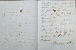 HUGO Victor Lettre autographe signée à Noël Parfait, 3 pages in-8 sur papier bleu dont adresse. Noël Parfait, journaliste et homme politique, ayant eu une part active dans la révolution de 1830, corrigea les épreuves des livres de poésie de Victor Hugo alors exilé à Guernesey. Victor Hugo le remercie ici pour son enthousiasme à propos de «L'Homme qui rit». ... «vous aimez ce livre et vous avez raison... et vous m'aidez car je ne puis rien faire de mieux...».