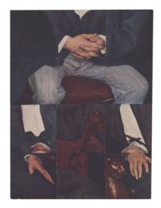 LUCA Gherasim CUBOMANIE ORIGINALE SIGNÉE. PORTRAIT DE M. WALLON. 14 x 10,3 cm. La cubomanie inventée par Gherasim Luca consiste en un collage d'illustrations diverses découpées en carrés égaux puis collés pour créer une nouvelle image, ici deux tableaux du peintre Bastien-Lepage. La cubomanie est signée au verso et porte la mention autographe de Luca : BASTIDE [sic] - LEPAGE portrait de M. Wallon, père de la Constitution et de M. X. (la 2e version faite).