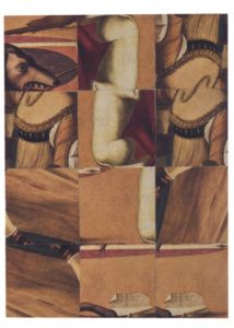 LUCA Gherasim CUBOMANIE ORIGINALE SIGNÉE. 16 x 12 cm. La cubomanie est signée au verso par Gherasim Luca. Elle représente une gueule de chien et un torse féminin en habit d'époque. Au verso, Luca a collé un papier «carte à gratter».