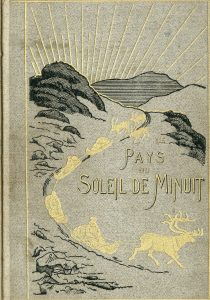 Le Pays du soleil de minuit. Voyages d'été en Suède, en Norvège, en Laponie et dans la Finlande septentrionale. Orné d'un grand nombre de vignettes dont 31 hors texte. P., Calmann Lévy, 1882, 4°, 503 p., cart. édit. orné de motifs dorés et en noir, tranches dorées (rousseurs).