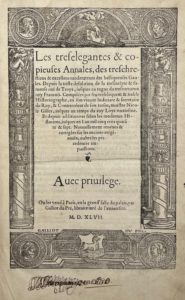 GILLES (Nicole) — Les Tres elegantes et copieuses annales des tres chrestiens et excellens moderateurs des belliqueuses Gaules.