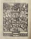 Cette magnifique édition gothique des Chroniques de Hainaut publiée par François Regnault et Galliot du Pré est imprimée sur deux colonnes, avec de nombreuses lettrines à fond criblé. Un très bel encadrement à portique orne chacun des trois titres ; il est tiré en rouge et noir au premier et au deuxième tome. La marque typographique de François Regnault orne le dernier feuillet du premier tome et celle de Galliot du Pré, le dernier feuillet du troisième tome.