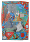 L’artiste est originaire des Pays-Bas méridionaux vers 1510-1520. Magnifiques bordures avec des chiens, cerf, cheval hybride, mouche, papillon, escargot, mouton, chat, singe et loup, de style ganto-brugeois, de même que la technique des peintures sur des feuillets rapportés. Feuillet vierge au recto des peintures sauf pour les ff. 59, 64.
