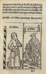 Belle édition gothique illustrée, imprimée par Nicolas Cousteau pour le compte de Galliot du Pré, avec le titre en rouge et noir et 40 (sur 42) bois gravés dans le texte, tirés par paires (sauf ceux du titre et du f. X5). Ces grands bois, souvent répétés, représentent les personnages de la pièce, surmontés d'un phylactère indiquant leur nom. Certains sont tirés du Térence de Vérard.