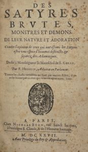 HÉDELIN (François) — Des satyres brutes, monstres et demons, de leur nature et adoration, contre l'opinion de ceux qui ont estimé les satyres estre une espece d'hommes distincts et separez des Adamicques.