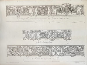 Les vingt magnifiques planches qu'il renferme, en premier tirage, décrivent les grilles, balcons, limons, rampes, couronnements, pilastres et autres ouvrages de ferronnerie réalisés par Jean Lamour, le serrurier de Stanislas Leszczynski, sur la Place Royale (actuelle Place Stanislas) et en d'autres lieux de Nancy. La première planche, consacrée aux grilles d’entrée de la place, se compose de cinq volets repliés et les deux dernières planches sont doubles.