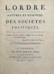[LEMERCIER DE LA RIVIÈRE (Paul-Pierre)] — L'Ordre naturel et essentiel des sociétés politiques.