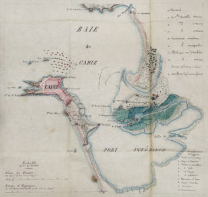 De plus, une très belle carte manuscrite de la baie de Cadix, exécutée en couleurs sur papier pelure, est repliée en fin de volume.