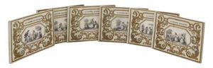 Paris, Jules Didot l'aîné, s.d. [v. 1840]. 6 livrets in-16 oblongs de 32 pp., cartonnage blanc glacé, décor gaufré en relief sur le premier plat composé de rinceaux dorés encadrant le titre et une illustration gravée (Reliures de l'éditeur).Très rare série complète de ces six charmants livrets pour enfants.