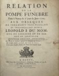 [ALLIOT (Pierre)] — Relation de la pompe funèbre faite à Nancy le 7e jour de juin 1729, aux obsèques de Léopold Ier du nom, duc de Lorraine et de Bar, roy de Jérusalem.