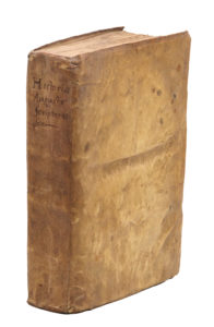 Paris, Ambroise et Jérôme Drouart, 1603. 2 parties en un volume in-4, vélin souple à recouvrements (Reliure de l'époque).Édition originale du commentaire d'Isaac Casaubon de l'Histoire auguste, célèbre biographie des empereurs romains depuis Hadrien jusqu'à Numérien, rédigée à la fin du IVe siècle par un unique auteur demeuré anonyme.
