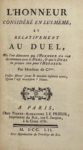 [CHAMPDEVAUX] — L'Honneur considéré en lui-même, et relativement au duel, où l'on démontre que l'honneur n'a rien de commun avec le duel, et que le duel ne prouve rien pour l'honneur.