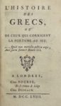 [GOUDAR (Ange)] — L'Histoire des Grecs, ou de ceux qui corrigent la fortune au jeu.