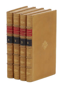 Quelques rousseurs éparses, petit trou au titre du tome III, réparation angulaire p. 41 du t. IV.