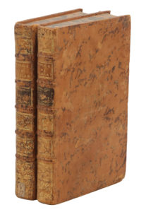LEVAILLANT (François) — Voyage dans l'intérieur de l'Afrique, par le cap de Bonne-Espérance. Paris, Leroy, 1790. 2 volumes in-8, veau marbré, dos orné, tranches marbrées (Reliure de l'époque). – Second voyage dans l'intérieur de l'Afrique. Paris, H. J. Jansen, an III [1794]. 3 volumes in-8, basane marbrée, dos lisse orné, tranches marbrées (Reliure de l'époque).