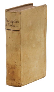 Amsterdam, Pierre Mortier, 1697. Petit in-12, bradel vélin rigide, décor à la Du Seuil et médaillon central estampés à froid, dos lisse, tranches mouchetées (Reliure de l'époque).Intéressante description de Venise à la fin du XVIIe siècle, dont la première édition a vu le jour à Paris en 1680.