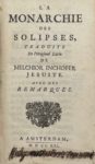 [SCOTTI (Giulio Clemente)] — La Monarchie des Solipses, traduite de l'original latin de Melchior Inchofer. Amsterdam, s.n.,