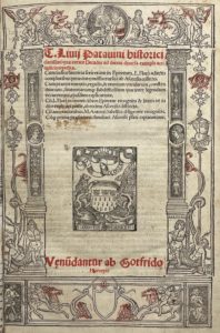Paris, Josse Bade pour Geoffroy Hittorp, 1516. In-folio, demi-basane fauve avec coins, dos muet, cote manuscrite, tranches lisses (Reliure du XVIIIe siècle).Belle édition de l'Histoire romaine imprimée par Josse Bade pour Geoffroy Hittorp et Louis Hornken. C'est une réimpression de l'édition qu'il avait publiée 1513.