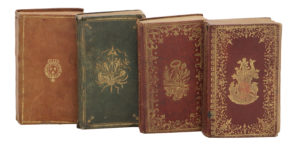 Nancy, 1769-1790. Ensemble 4 volumes in-18, reliures en maroquin de l’époque, tranches dorées. Réunion de quatre livraisons de cet annuaire administratif lorrain publié de 1762 à 1790 (Saffroy, Almanachs, n°400).