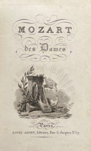 Mozart des dames. Paris, Louis Janet, s.d. [1827]. In-18, cart. et étui décorés gravures en noir. Un titre gravé, 4 figures et 48 pp. de musique notée. 2 ff. déreliés.