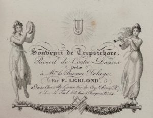 [ÉTRENNES] — Souvenir de Terpsichore. Recueil de contre-danses dédié à Mme la Baronne Delage.