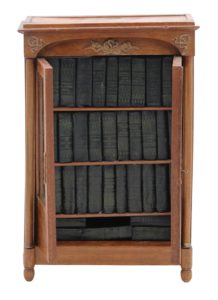 Londres, Allied Newspapers, s.d. [v. 1932]. 40 volumes minuscules (50 x 33 mm), rexine noire de l'éditeur. Collection complète de cette édition miniature des œuvres de Shakespeare conservée dans une bibliothèque miniature en bois (27 x 18 x 7,5 cm ; petits éclats).