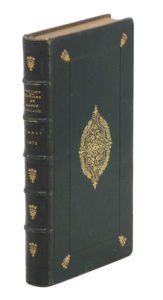 Paris, Alphonse Lemerre, 1870. In-12, maroquin vert, double encadrement de filet à froid et fleurons dorés aux angles, médaillon doré au centre, dos orné de fleurons dorés, dentelle intérieure, tranches dorées (Smeers).Titre-frontispice gravé à l'eau-forte par Bracquemond.
