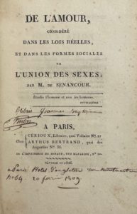 SENANCOUR (Étienne Pivert de) — De l'amour, considéré dans les lois réelles, et dans les formes sociales de l'union des sexes.