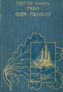 Fram over Polhavet. Den Norske Polarfaerd 1893-1896. Med et tillaeg af Otto Sverdrup. Kristiania, H. Aschenhoug, 1897, 2 vol. grand 8°, [14]-526, [10]-553 p., nombr. ill., cartes et reprod. photographiques in- et hors texte, cart. orné édit., tranches marbrées (très lég. rousseurs). Edit. orig. "Fram over Polhavet" (Farthest North) is Nansen's own account of a remarkable achievement in polar exploration, every detail of which was worked out by Nansen himself and went absolutely according to the plan (Printing and the Mind of Man, 384). Bel ex.