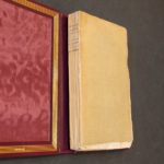 CONSTANT (Benjamin). Adolphe, anecdote trouvée dans les papiers d'un inconnu. Londres, chez H. Colburn. Paris, chez Treuttel et Würtz, 1816. In-12, vii-(une blanche)-228 pp., broché sous couverture d'attente avec étiquette imprimée au dos ; volume placé sous chemise de maroquin bordeaux à dos à nerfs avec encadrement de filets dorés multiples aux entrenerfs et sur les plats, encadrement intérieur de même cuir fileté, doublures de moire bordeaux, étui bordé ; titre aux marges roussies et trace de collette au centre avec inscription à l'encre restituant le mot « par », un manque angulaire de papier, un bifeuillet détaché, une note ancienne à l'encre au bas de la dernièe page, étui légèrement frotté (Creuzevault). PREMIERE EDITION FRANÇAISE, PARUE UNE SEMAINE APRES L'EDITION ORIGINALE ANGLAISE ; exemplaire aux caractéristiques du second état. Parue à Paris vers le 15 juin 1816, cette édition fut tirée sur les presses de l'imprimeur parisien Georges-Adrien Crapelet (Courtney, n° 18b), en deux états, et établie d'après les épreuves de l’édition originale parue juste avant à Londres vers le 7 juin. L'édition originale de Londres comme les deux états de l'édition parisienne sont d'une grande rareté.